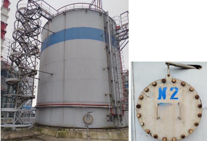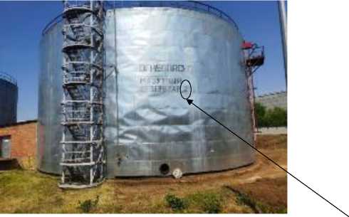 Рисунок 1 - Общий вид резервуара стального вертикального цилиндрического РВС-5000 и места нанесения заводского номера