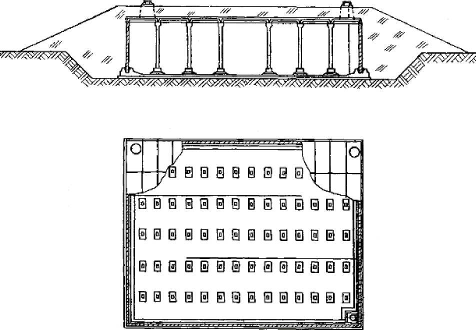 Резервуары представляют собой прямоугольные конструкции, состоящие из сборных железобетонных стенок, монолитного днища и кровли.