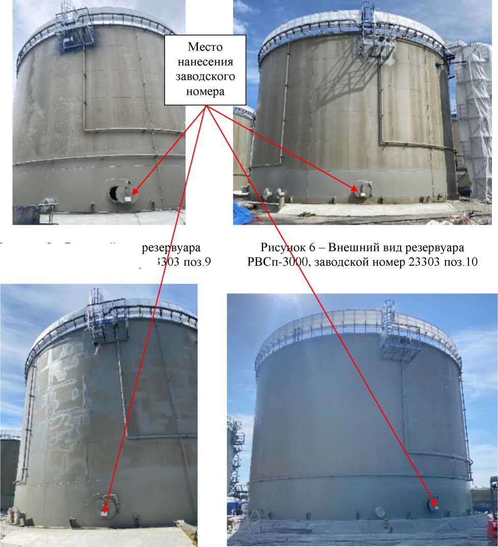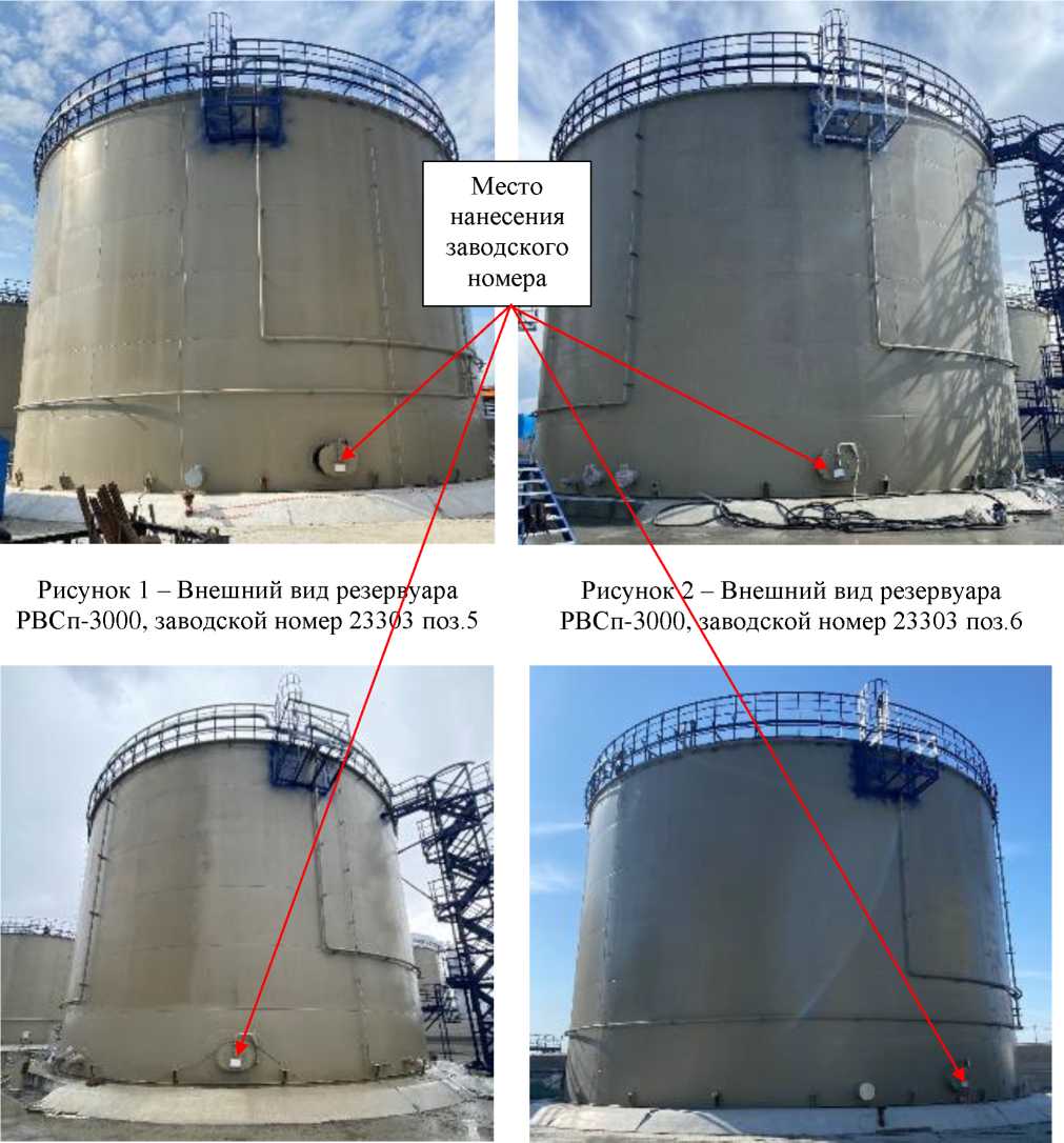 Внешний вид резервуаров РВСп-3000 и РВСп-200 с обозначением мест нанесения заводского номера, приведены на рисунках 1-10. Внешний вид маркировочных табличек приведен на рисунках 11-20.