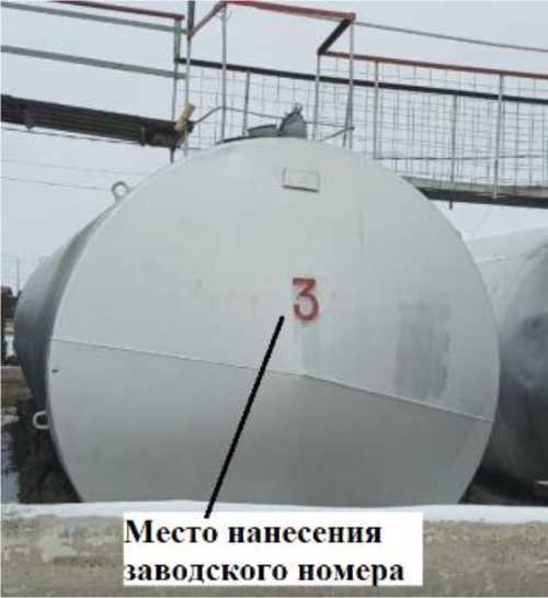 Общий вид резервуара с указанием места нанесения заводского номера приведен на рисунке 1.