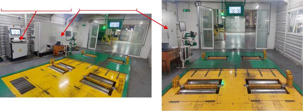 Конструктивно стенды выполнены из следующих основных агрегатов и узлов: опорное устройство, включающее в себя пары опорных роликов, приборная стойка с пультом управления и компьютером, силовой шкаф.