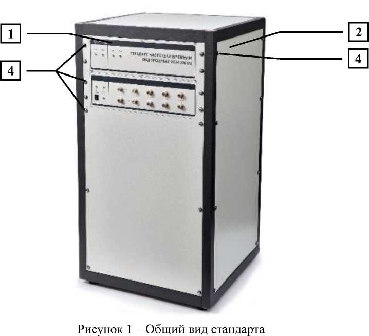 Общий вид стандарта, вид задней панели стандарта, обозначение места нанесения знака утверждения типа, места нанесения знака поверки, места нанесения заводского номера и схема пломбировки от несанкционированного доступа представлены на рисунках 1, 2: