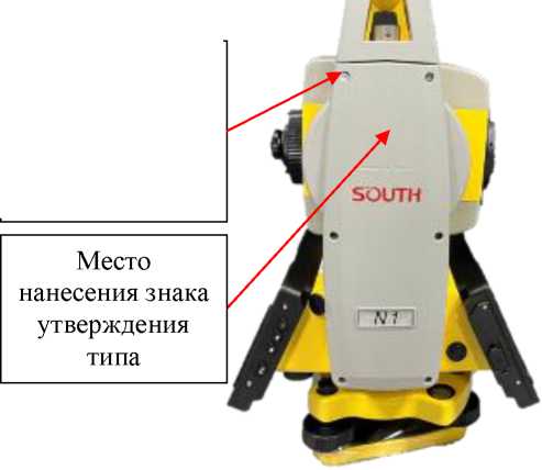 наносится типографским способом на титульный лист руководства по эксплуатации и наклейкой на корпус тахеометра.