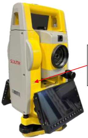 Заводской номер в цифровом формате наносится методом печати на лицевой стороне тахеометра. Места нанесения знака утверждения типа и пломбировки от несанкционированного доступа представлены на рисунке 2. Место нанесения заводского номера представлено на рисунке 3.