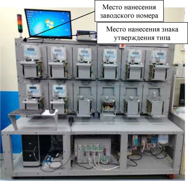 Установки имеют в составе эталонные счетчики электрической энергии МИР С-04.02-230-5(100)-И-1) (далее - эталонные счетчики), рег. № 61678-15, предназначенные для измерения значений испытательных сигналов. Эталонные счетчики расположены на обратной стороне стенда напротив каждого КУ.