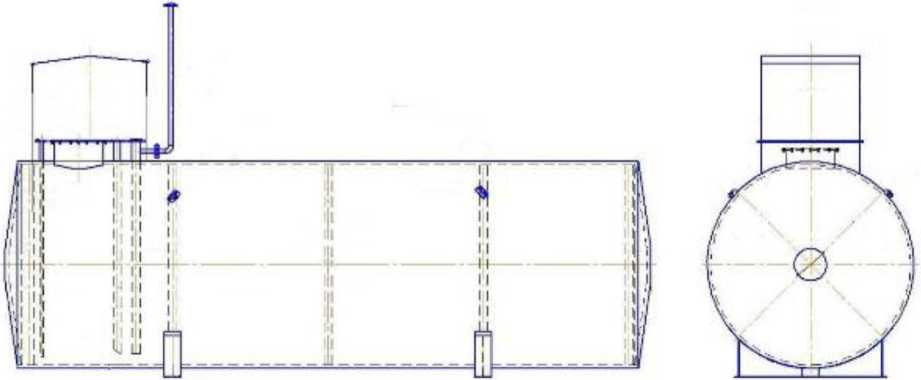 Резервуары представляют собой горизонтально расположенные цилиндрические стальные сосуды с днищами.