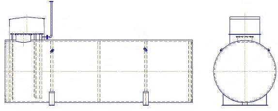 Резервуары представляют собой горизонтально расположенный цилиндрический стальной сосуд с днищами.