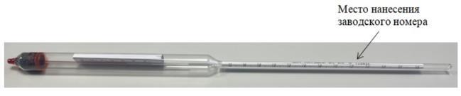 Заводской номер в виде цифрового обозначения, состоящего из арабских цифр, наносится типографским или рукописным способом на шкалу ареометра в месте, указанном на рисунках 1 - 3.