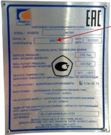 наносится на маркировочную табличку колонки в виде наклейки и на титульный лист эксплуатационной документации типографским способом.