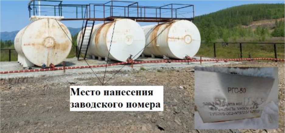 Рисунок 1 - Общий вид резервуаров РГС-50 с указанием места нанесения заводских номеров
