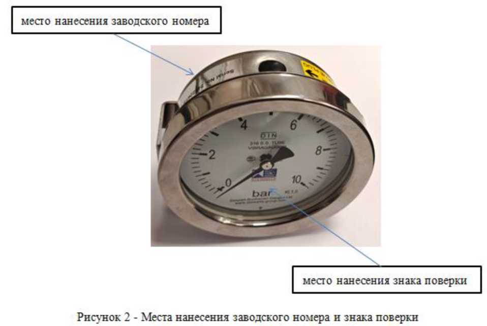 Знак поверки может быть нанесен на стекло манометра. Место нанесения знака поверки представлено на рисунке 2.