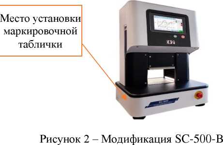 На корпусе пресса с обратной стороны при помощи клея устанавливается маркировочная табличка, содержащая следующую информацию: тип средства измерений, модификация, товарный знак и сведения об изготовителе, номинальная нагрузка, знак утверждения типа, напряжение питания, серийный номер (в виде цифрового кода), год выпуска. Информация на табличку наносится печатным способом.