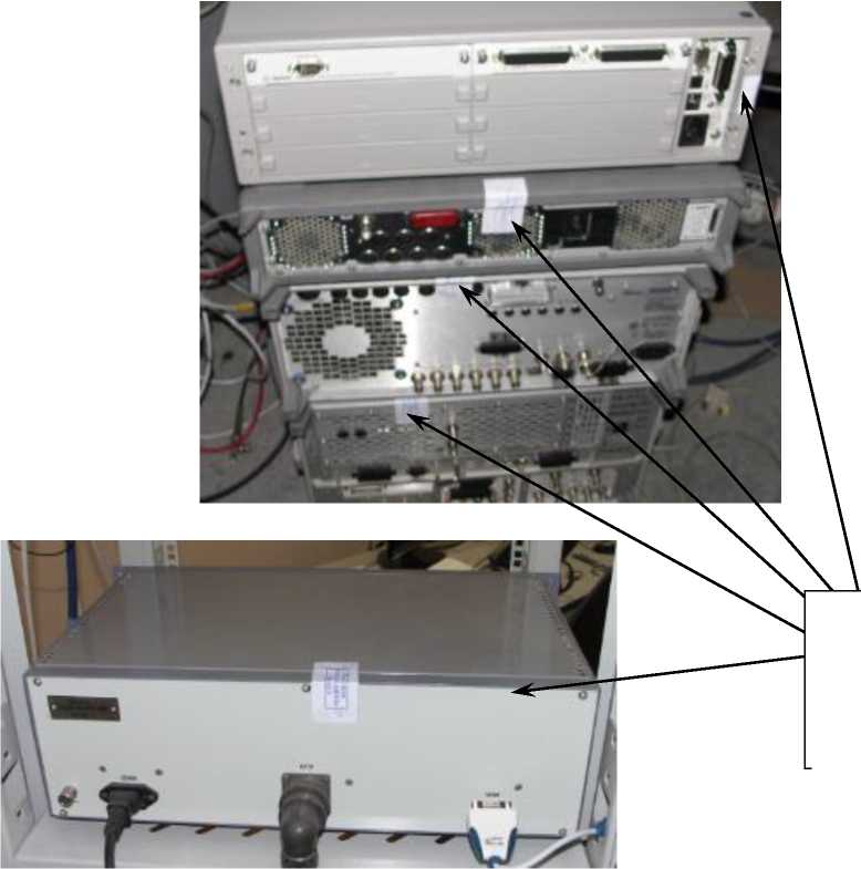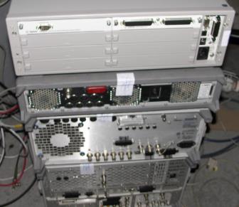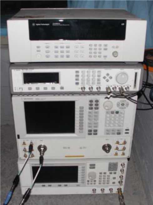 Рисунок 5 - Пример конфигурации СВЧ-оборудования (сверху вниз: коммутатор 34980А, генератор импульсов 81110A, ВАЦ E8363C и генератор сигналов E8257D)