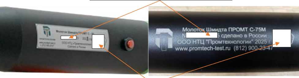 Нанесение знака поверки на средство измерений не предусмотрено. Заводской номер в цифровом виде наносится методом гравировки или наклеивания этикетки на боковую поверхность корпуса молотка.