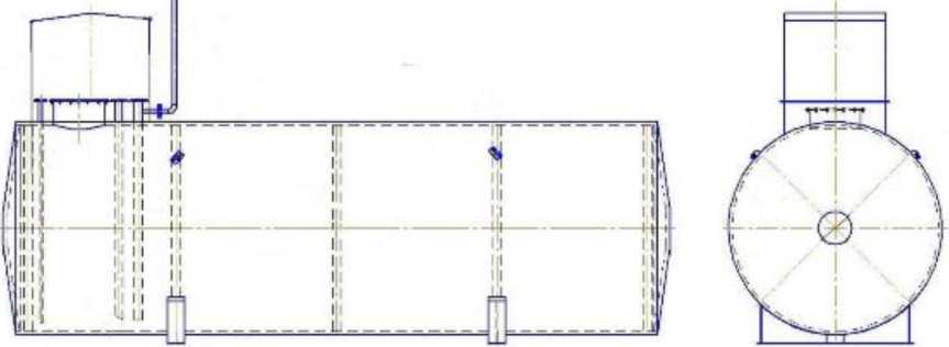 Резервуары представляют собой горизонтально расположенный цилиндрический стальной сосуд с днищами.