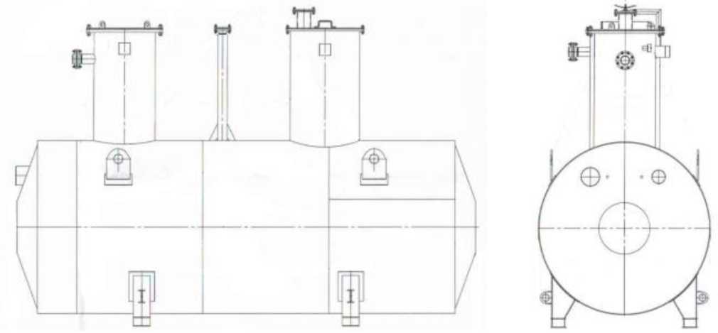Резервуары представляют собой горизонтально установленные стальные односекционные сосуды цилиндрической формы с днищами.