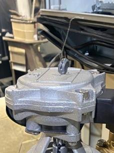 Поступательное движение поршней вместе с кулисами преобразуется во вращательное движение коленчатого вала, которое через соединительную муфту передается на вал генератора импульсов.
