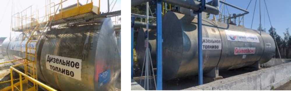 Резервуары оборудованы смотровой площадкой с лестницей и ограждениями.