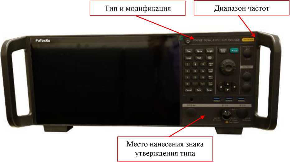 наносится на переднюю панель анализаторов в виде наклейки в месте, указанном на рисунке 1, и на титульный лист руководства по эксплуатации типографским способом.