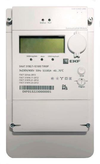 SKAT 3X5X/X - X (X) X X X X X, где 3 - количество фаз, Х1 - вид учитываемой энергии, 5 - исполнение, Х2 - тип отсчетного элемента, Х3 - класс точности по активной/реактивной энергии, Х4 - базовый и номинальный ток, Х5 - максимальный ток, Х6 - датчик тока (способ подключения), Х7 - тип интерфейса, Х8 - наличие встроенного реле управления, Х9 - тип корпуса и крепления, Х10 - тип коммуникационного модуля На испытании представлены : SKAT 315E/0,5S-5(10) TIRP SKAT 315E/1-10(100) SIRP |