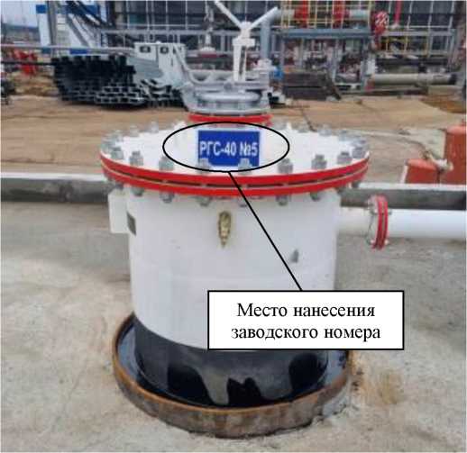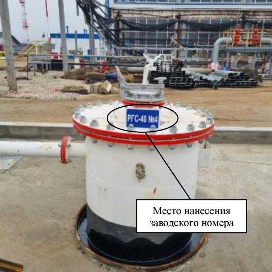 Рисунок 2 - Общий вид надземной части резервуара РГС-40 № 4 с указанием места нанесения заводского номера