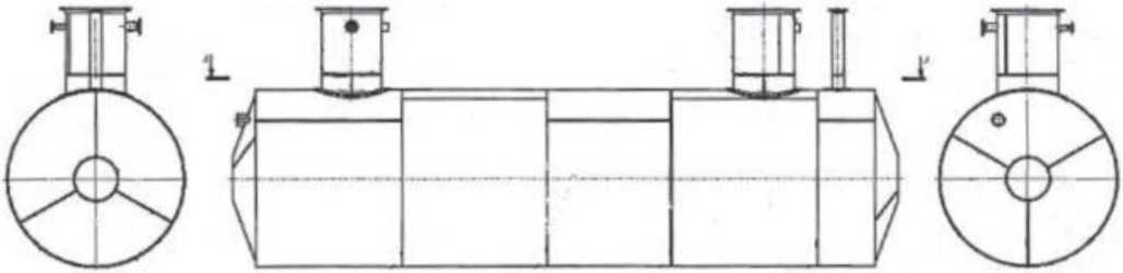 Эскиз общего вида резервуара приведен на рисунке 2. Фотография горловин и общего вида с измерительными люками приведена на рисунке 3.