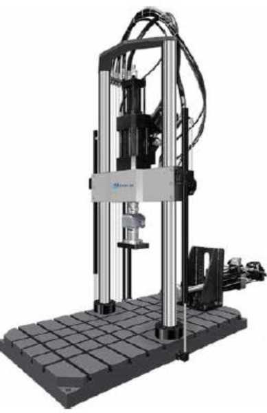 Испытываемый образец закрепляется в захватах, смонтированных на поршне и траверсе. Нагрузка, прикладываемая к испытываемому образцу, измеряется датчиком силы, размещенным на траверсе, который может работать на растяжение и сжатие.