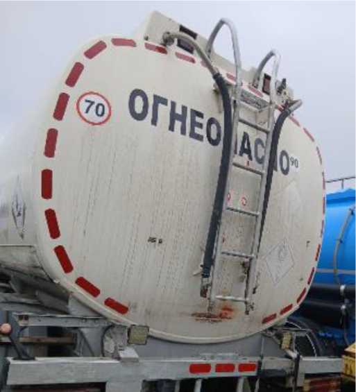 На боковых сторонах и сзади ППЦ имеются надпись «ОГНЕОПАСНО», знак ограничения скорости и знаки обозначения транспортного средства, перевозящего опасный груз.