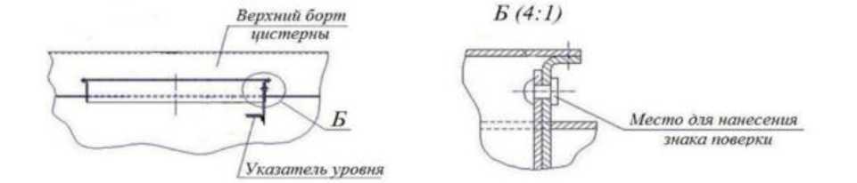 Знак поверки наносится на свидетельство о поверке и заклепку, крепящую указатель уровня налива в виде оттиска поверительного клейма.