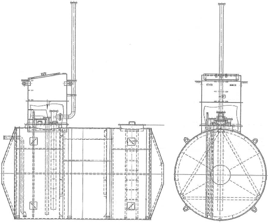 Резервуар представляет собой горизонтальный стальной сварной двустенный сосуд с коническим днищем, с горловиной и технологическими патрубками, подземного расположения.