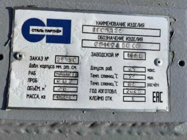 Табличка с заводским номером в числовом формате, состоящем из арабских цифр, прикреплена с помощью заклепывания и расположена на боковой части крышки люка. Заводской номер выбит ударным способом на табличке и типографским способом в паспорте резервуара. Способ нанесения заводского номера обеспечивает возможность прочтения информации и его сохранность в процессе эксплуатации.