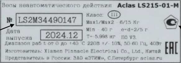 - обозначение класса точности весов по ГОСТ OIML R 76-1-2011;
