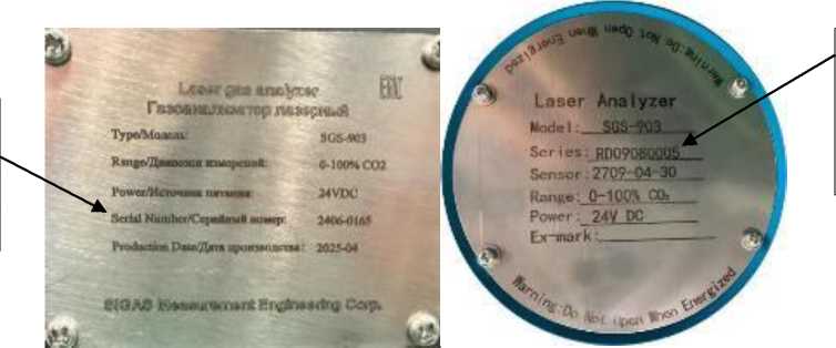 Серийный номер, однозначно идентифицирующий экземпляр средства измерений, присваивается по номеру блока управления, наносится методом лазерной гравировки на идентификационную табличку, наклеенную на корпус блока управления, и имеет цифровое обозначение. Серийный номер приемного блока, входящего в состав средства измерений, указывается в паспорте и наносится непосредственно на корпус приёмного блока на круглую идентификационную табличку методом гравировки, и имеет буквенно-цифровое обозначение.