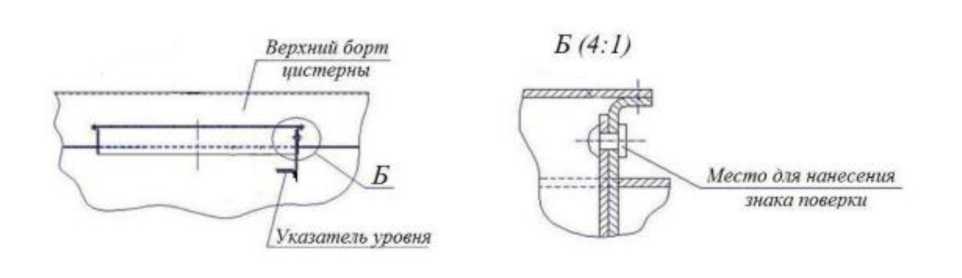 Знак поверки наносится на свидетельство о поверке и пломбу, крепящую указатель уровня налива в виде оттиска поверительного клейма.