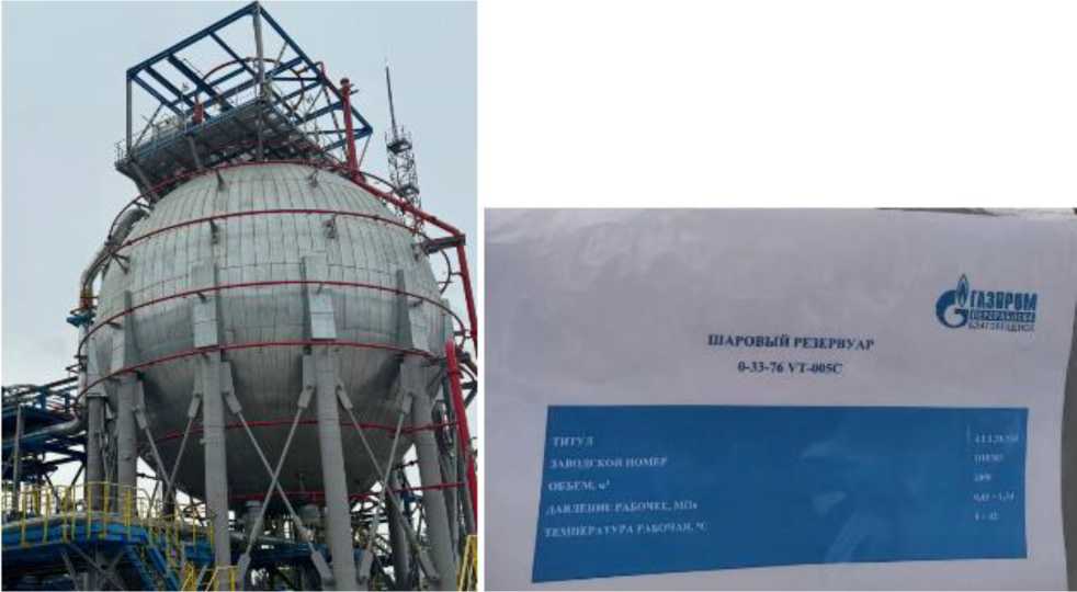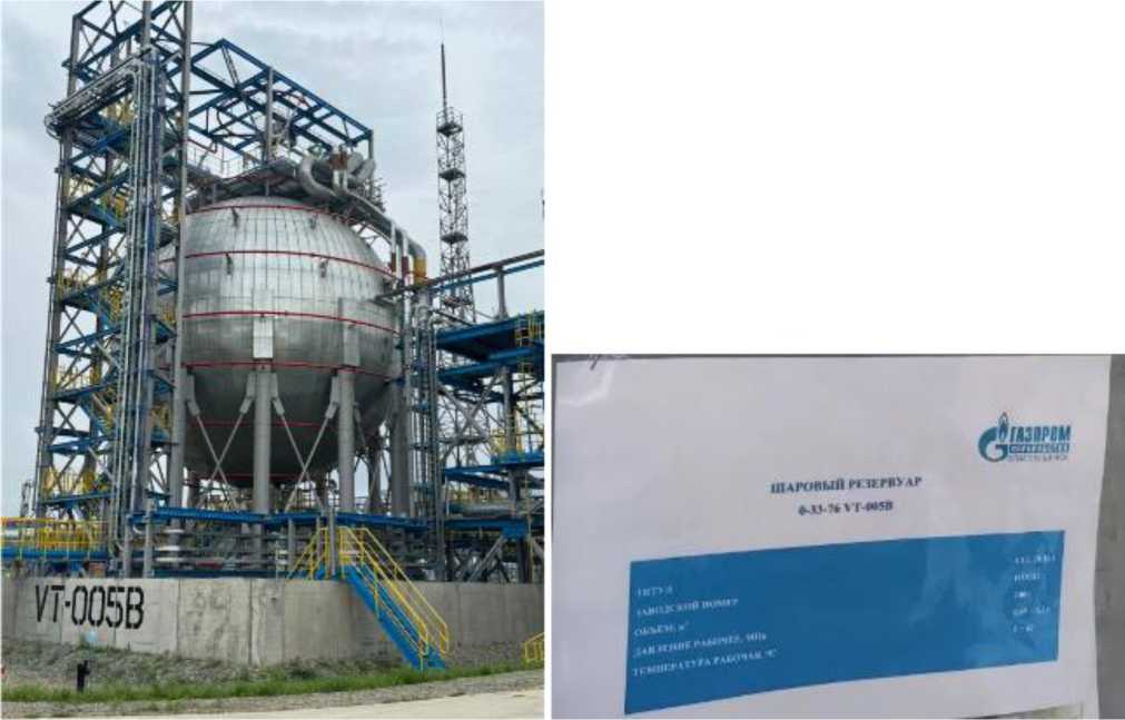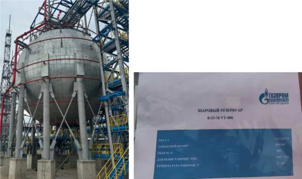 Тип резервуаров - стальные сферические (шаровые), номинальной вместимостью 2400 м3.
