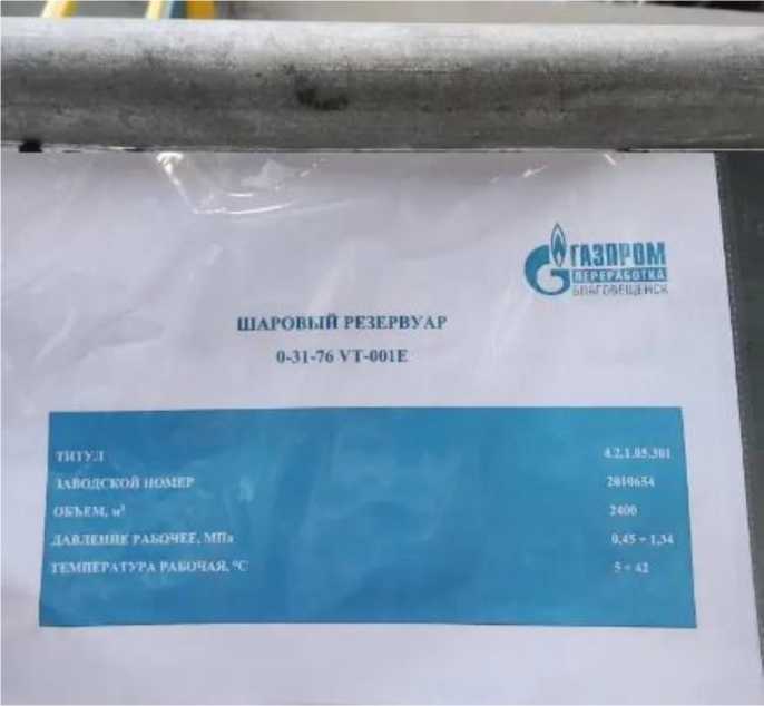 Резервуары РШС-2400 с заводскими номерами 2010653, 2010654, 2010655, 2010656, 0-31-76 VT-001E, 0-31-76 VT-001F, 0-31-76 VT-001G, 0-31-76 VT-001H расположены на территории Резервуарного парк № 1, ООО «Газпром переработка Благовещенск» по адресу: Амурская область, г. Свободный, Тер. ТОР Амурская.