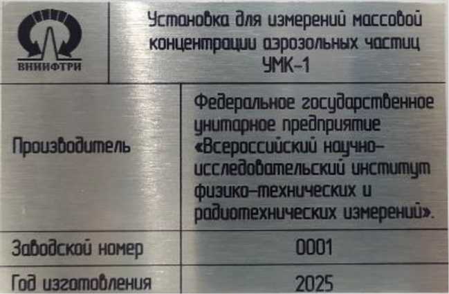 Рисунок 2 - Табличка с информацией об установке для измерений массовой концентрации аэрозольных частиц УМК-1