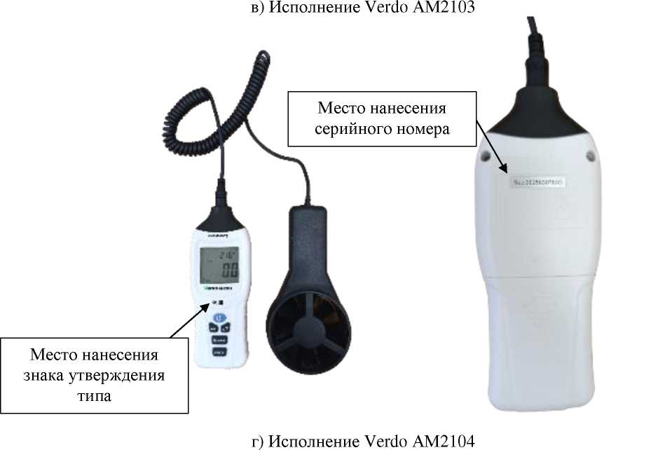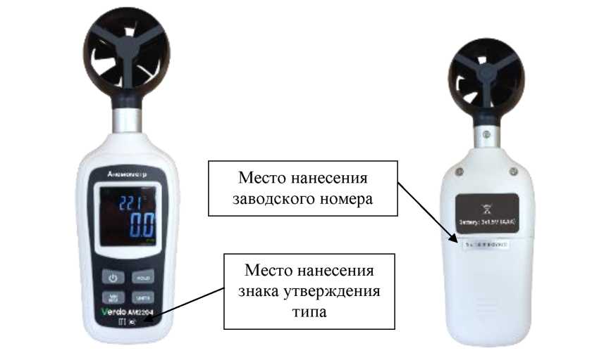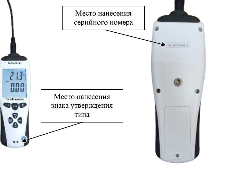 Общий вид анемометров с указанием места нанесения знака утверждения типа, места нанесения серийного номера представлен на рисунке 1. Нанесение знака поверки на анемометры не предусмотрено.