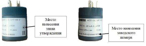 Общий вид маркировочной таблички с местом указания заводского номера и местом расположения знака утверждения типа представлены на рисунке 2.