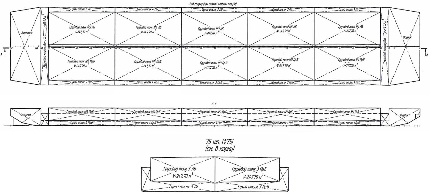 Танки отделены от наружной обшивки наливного судна. Погрузка и выгрузка нефтепродуктов производится закрытым способом. Трубы для подвода и отвода нефтепродуктов изготовлены таким образом, что при измерениях уровня жидкости исключена возможность притока или вывода жидкости произвольным образом.