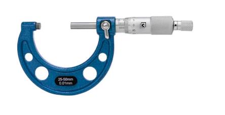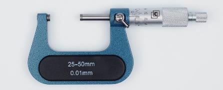 - микрометра с отсчетом показаний по шкалам стебля и барабана, с диапазоном измерений от 25 до 50 мм, класса точности 1: