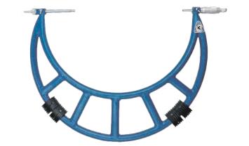 Микрометры состоят из скобы, в которую с одной стороны установлена микрометрическая головка с измерительной поверхностью, а с другой - неподвижная пятка. На микрометрической головке микрометров имеется устройство (трещотка, фрикцион), обеспечивающее постоянство измерительного усилия в заданных пределах. Для закрепления микрометрического винта имеется стопорное устройства. Микрометры с отсчетом по электронному цифровому отсчетному устройству могут быть изготовлены без стопорного устройства.