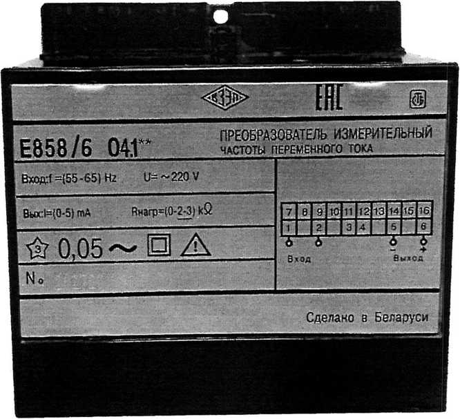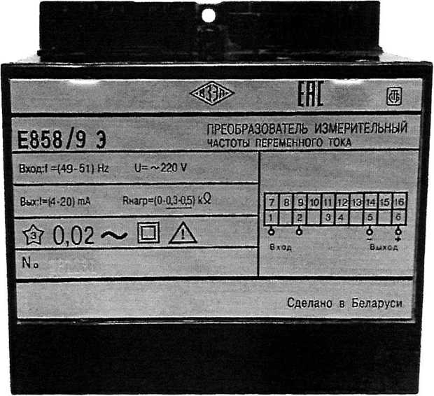 ТУ 25-0415.052-85 «Преобразователи измерительные частоты переменного тока Е858. Технические условия».