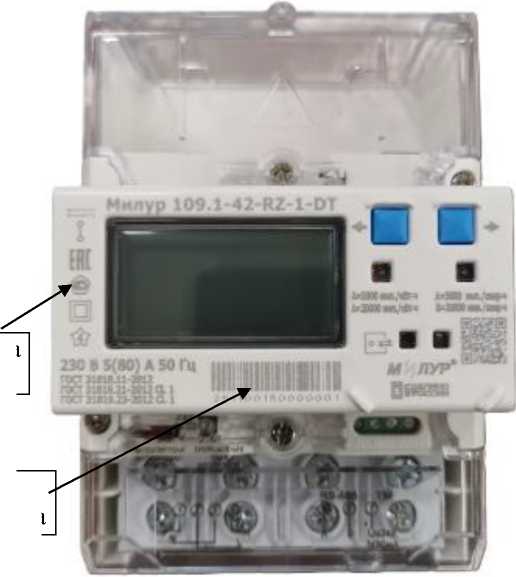 Милур 109.XX-X1 X2-X3X3X3X3 X4-X5 X6X6X6-X7 X8 X9 , где Милур 109 - Наименование типа XX - Обозначение конструктивной особенности (может принимать значения от 1 до 99) X1 - Базовый (максимальный) ток; класс по активной/реактивной энергии X2 - Номинальное напряжение X3X3X3X3 - Наличие интерфейсов связи X4 - Наличие модуля СКЗИ X5 - Тип корпуса X6X6X6 - Дополнительные возможности ПУ X7 - Наличие встроенного реле отключения нагрузки X8 - Измерительный элемент в «нулевом» проводе X9 - Тип подключаемого сменного модуля связи На испытания представлены: Милур 109.1-32-RZ-1-DT |