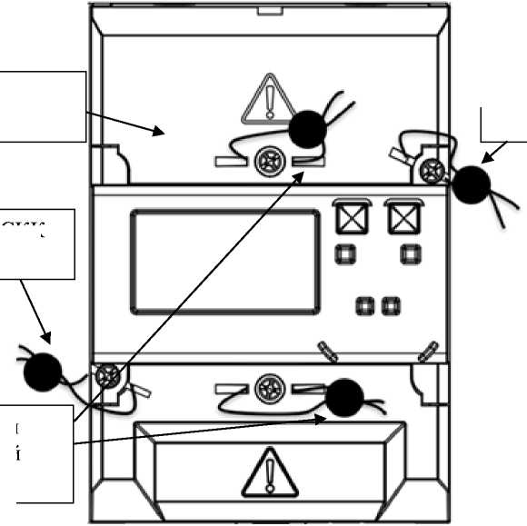 - клеммные колодки (силовая - для подключения сети, слаботочная -для импульсных выходов, дополнительных интерфейсов);
