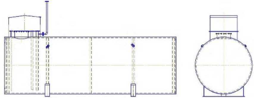 Резервуары представляют собой горизонтально расположенные цилиндрические стальные сосуды с днищами.
