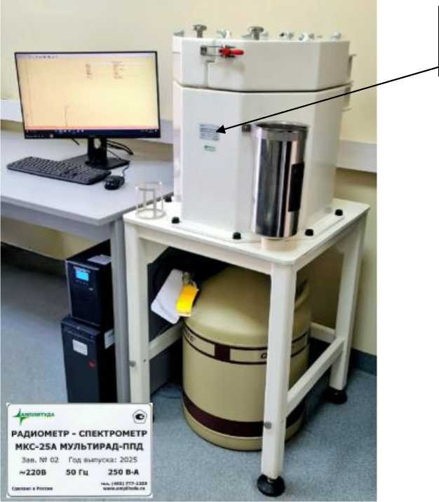 Обеспечение защиты МКС-25А от несанкционированной настройки и регулировки осуществляется путем нанесения пломбы в виде стикера-наклейки. Пломба наносится изготовителем на блок детектирования на место соединения корпуса детектора с криостатом.