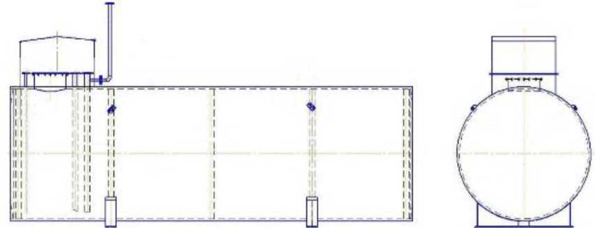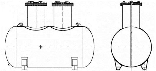 Резервуары представляют собой горизонтально расположенный цилиндрический стальной сосуд с днищами.
