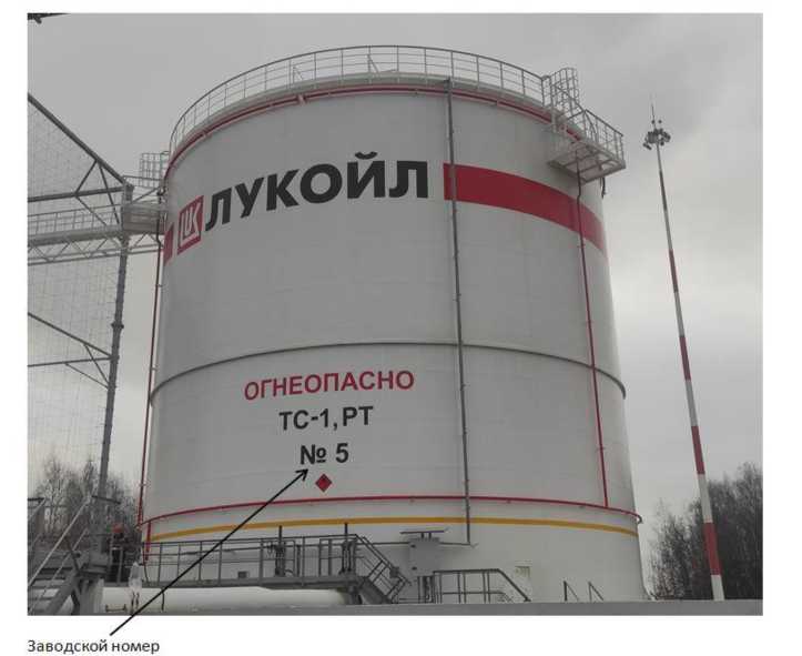 Заводской номер, идентифицирующий средство измерений, имеет цифровое обозначение и нанесен на корпус резервуара методом трафаретной печати в месте, указанном на рисунке 1.