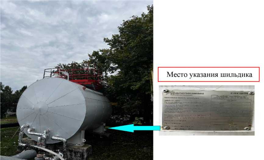 Общий вид резервуара с указанием места шильдика представлен на рисунке 1.